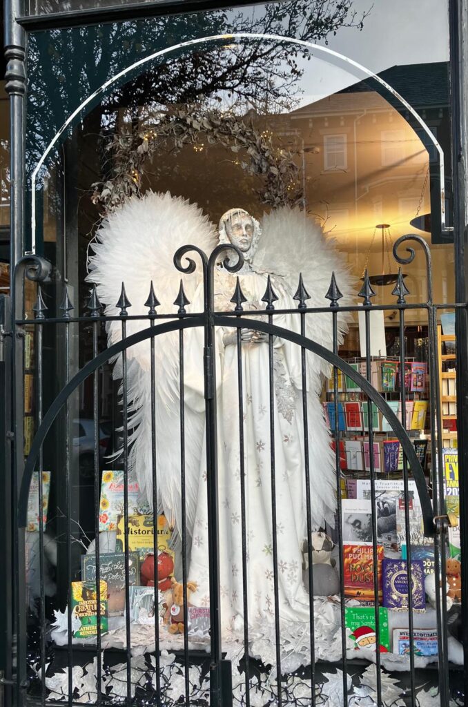 The 2025 window features a towering Christmas angel – and it’s all hand made, including every single feather on her wings.